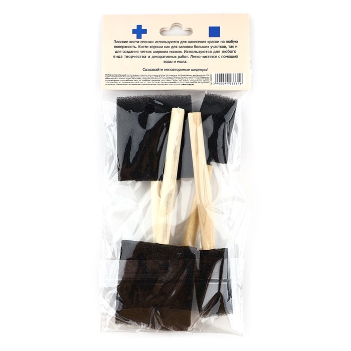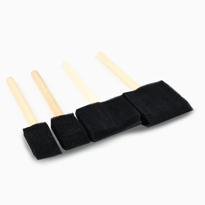 Кисть для рисования спонж набор 4 шт. «Создавай» плоские, деревянная ручка