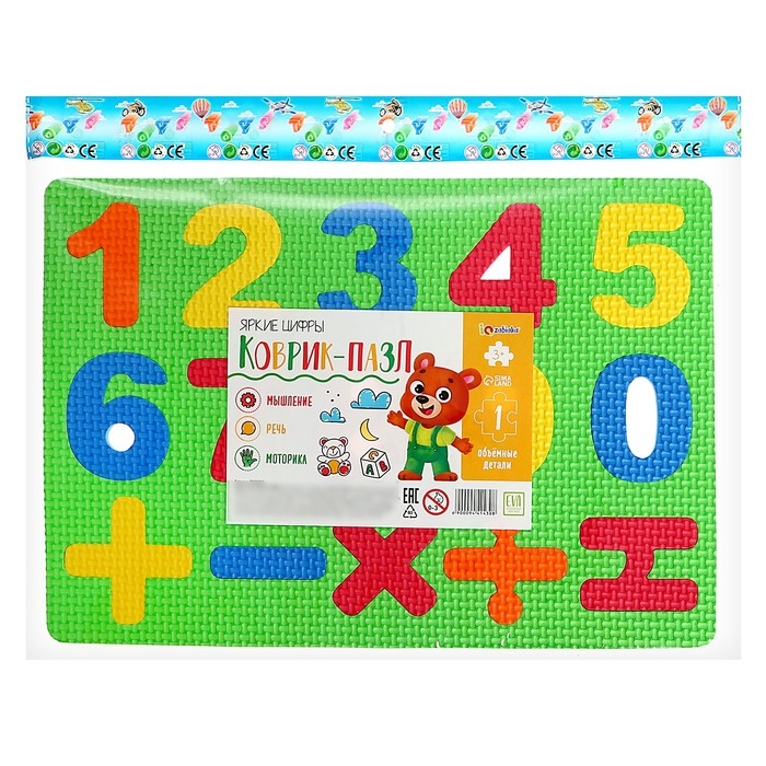 Коврик-пазл «Яркие цифры», цвета МИКС