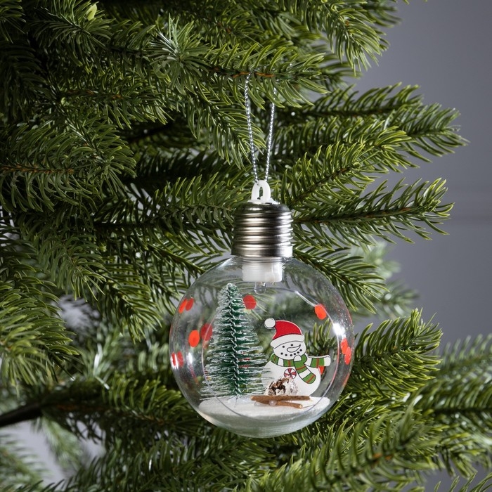 Ёлочный шар «Снеговик», батарейки, 1 LED, свечение тёплое белое