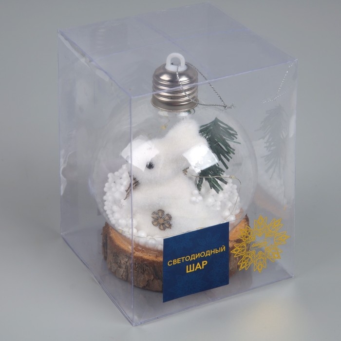 Ёлочный шар «Зайка с ёлкой», батарейки, 1 LED, свечение тёплое белое