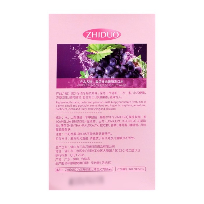 Набор ополаскивателей для рта в стиках со вкусом винограда представляет собой инновационное решение для поддержания устной гигиени. Оригинальные формулы и передовые технологии производства ополаскивателей обеспечивают не только приятный виноградный вкус, но и множество полезных свойств: