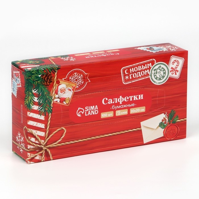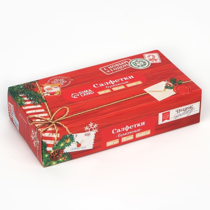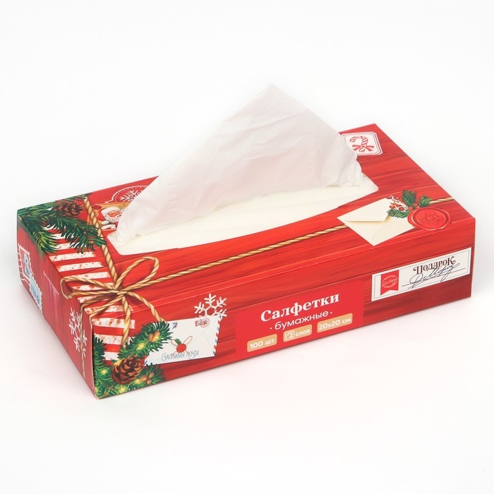 Салфетки бумажные в коробке «Новый год! Новогодняя посылка», 100 шт, двухслойные