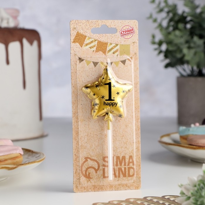Свеча в торт на шпажке "Воздушный шарик.Звезда", цифра 1, 5,5 см, золотая
