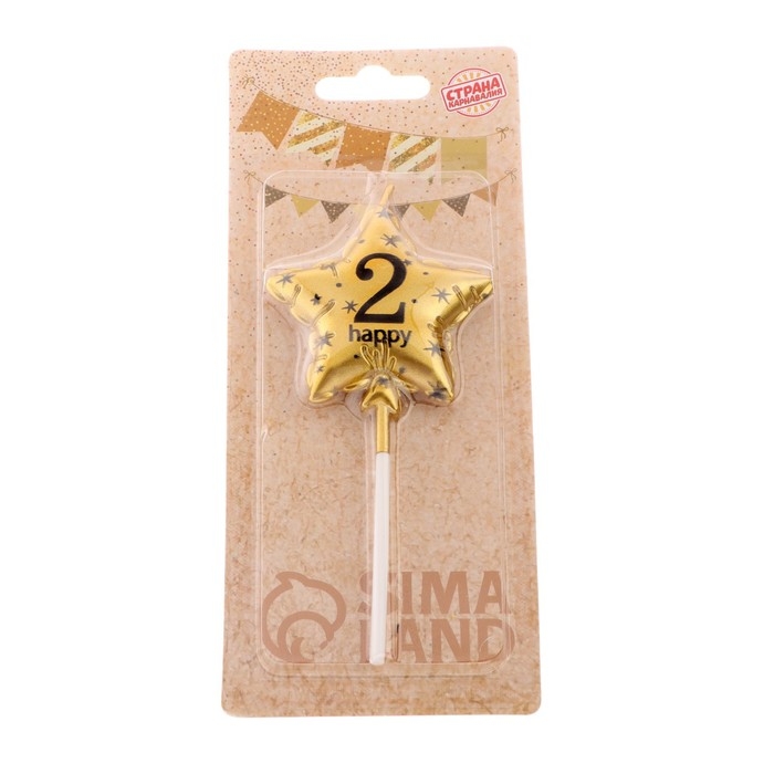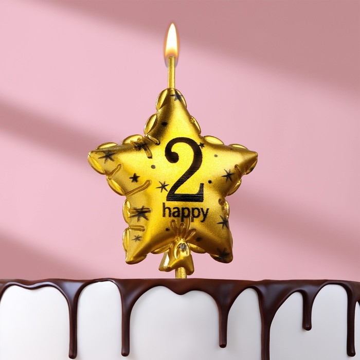 Свеча в торт на шпажке "Воздушный шарик.Звезда", цифра 2, 5,5 см, золотая