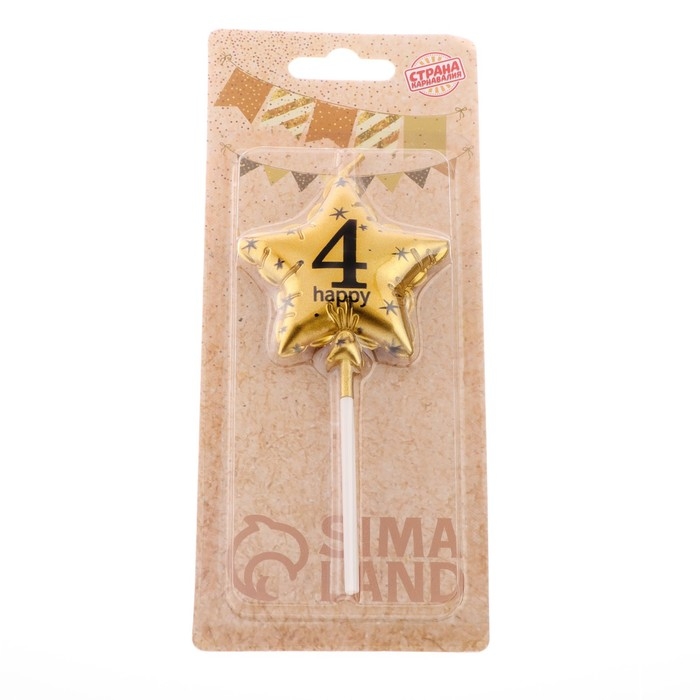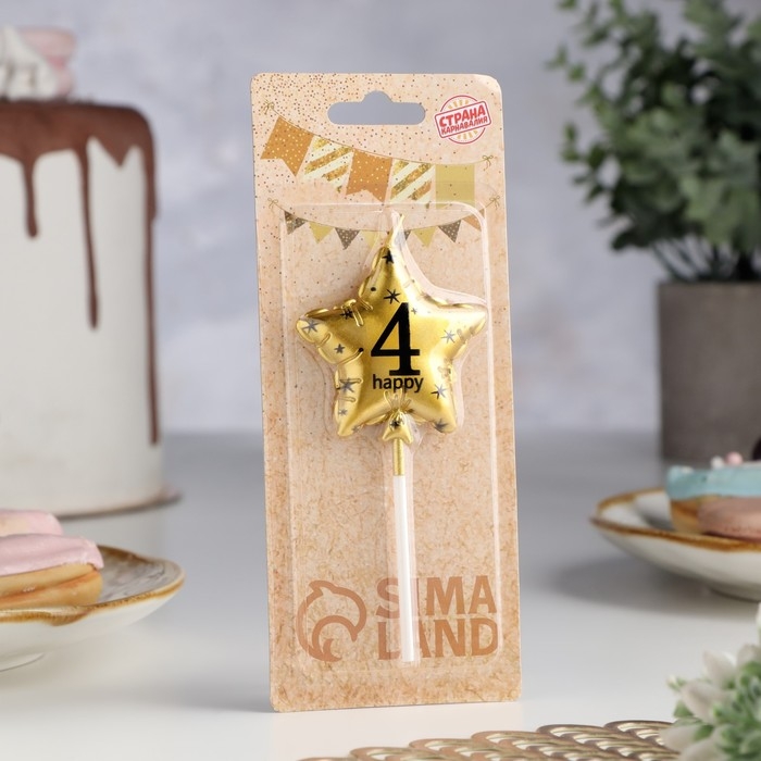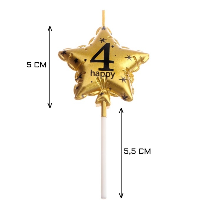 Свеча в торт на шпажке "Воздушный шарик.Звезда", цифра 4, 5,5 см, золотая