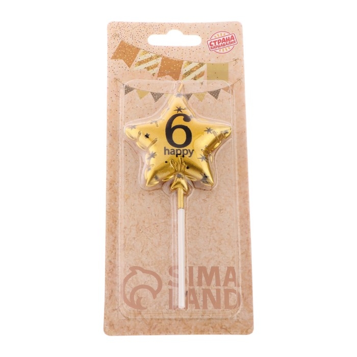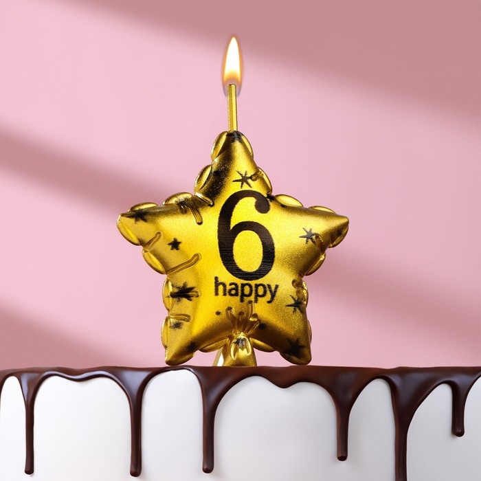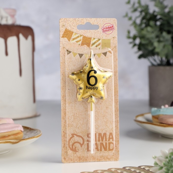 Свеча в торт на шпажке "Воздушный шарик.Звезда", цифра 6, 5,5 см, золотая