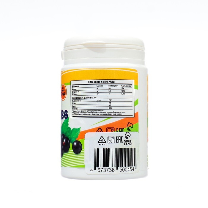 Магний В6 жевательный с натуральной смородиной, 100 таблеток по 500 мг