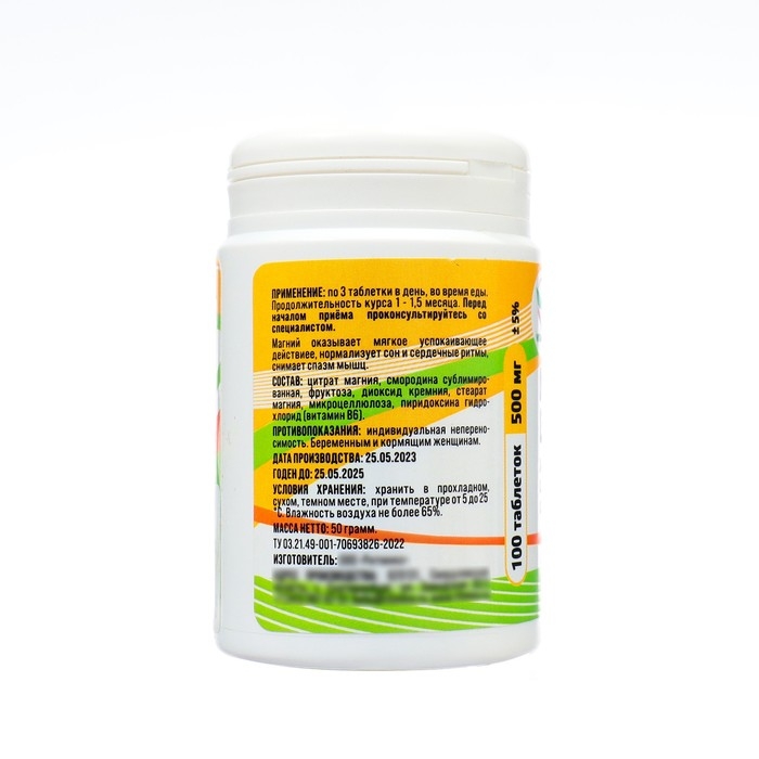 Магния цитрат, смородина сублимированная, фруктоза, диоксид кремния, стеарат магния, микроцеллюлоза, пиридоксина гидрохлорид.