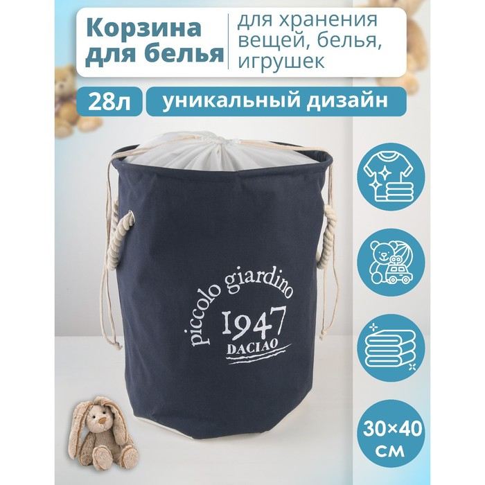 Корзина для белья Доляна «Пикколо», 30×30×40 см, цвет синий