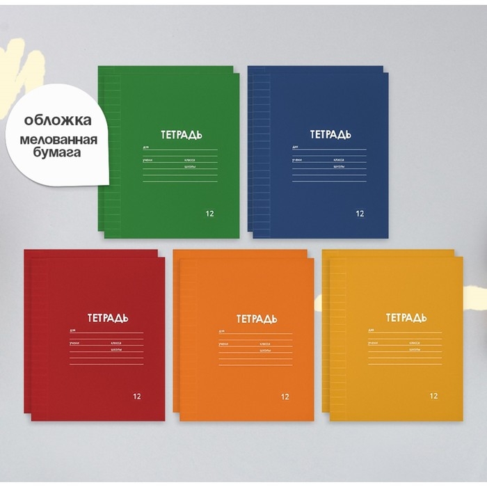 Комплект тетрадей из 10 штук, 12 листов в узкую линию Calligrata "Однотонная Классика Линовка. Эконом", обложка мелованная бумага, ВД-лак, блок №2, белизна 75% (серые листы), 5 видов по 2 штуки
