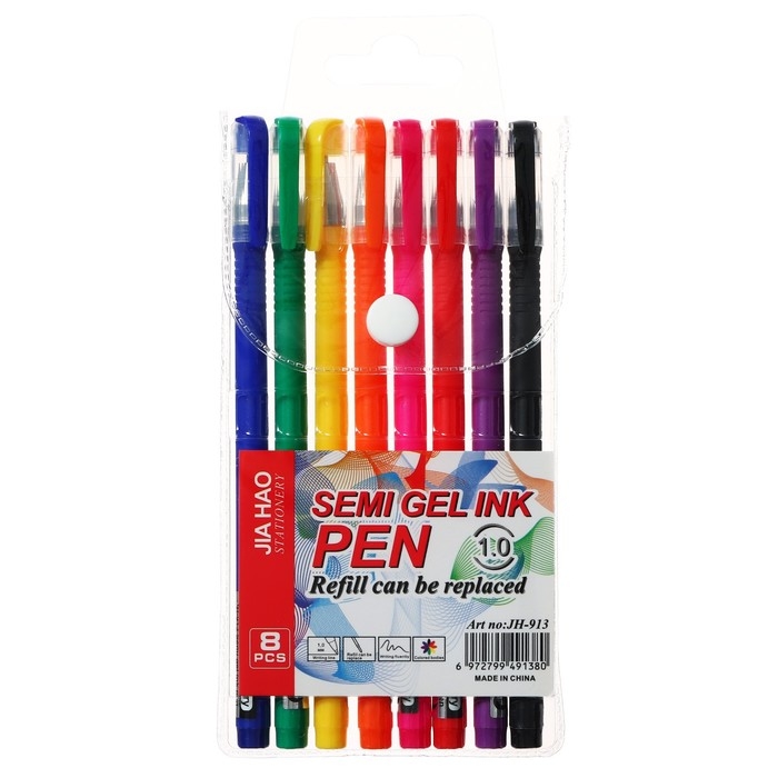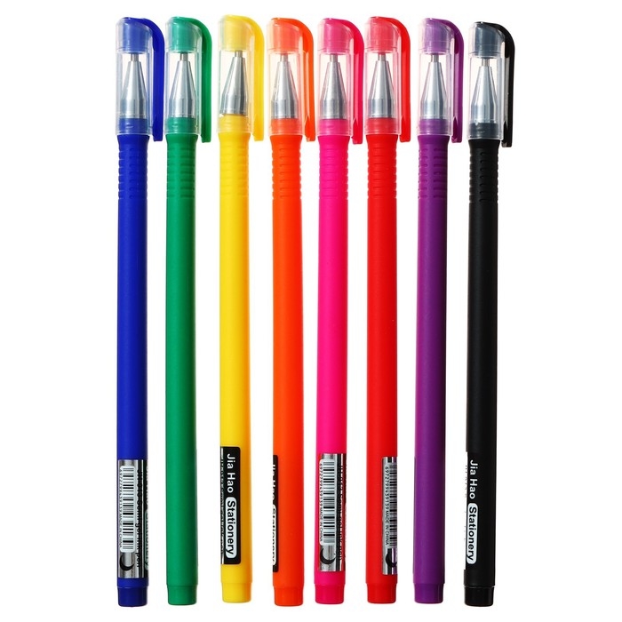 Набор шариковых ручек 8 цветов,1 мм, однотонный цвет корпуса софтач, в блистере