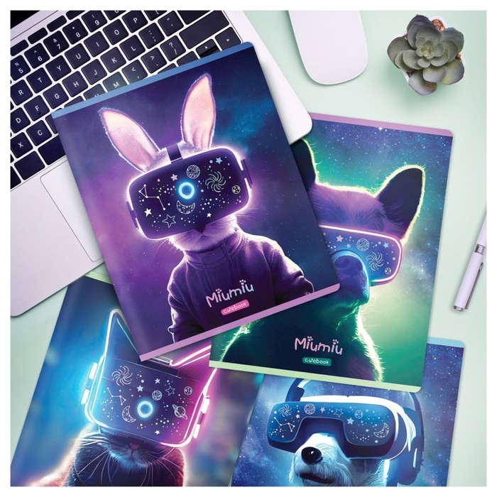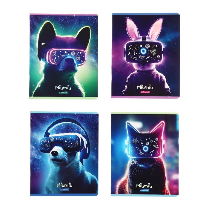 Тетрадь 48 листов в клетку MESHU Miumiu, обложка мелованный картон, матовая ламинация, тиснение фольгой, блок офсет, МИКС