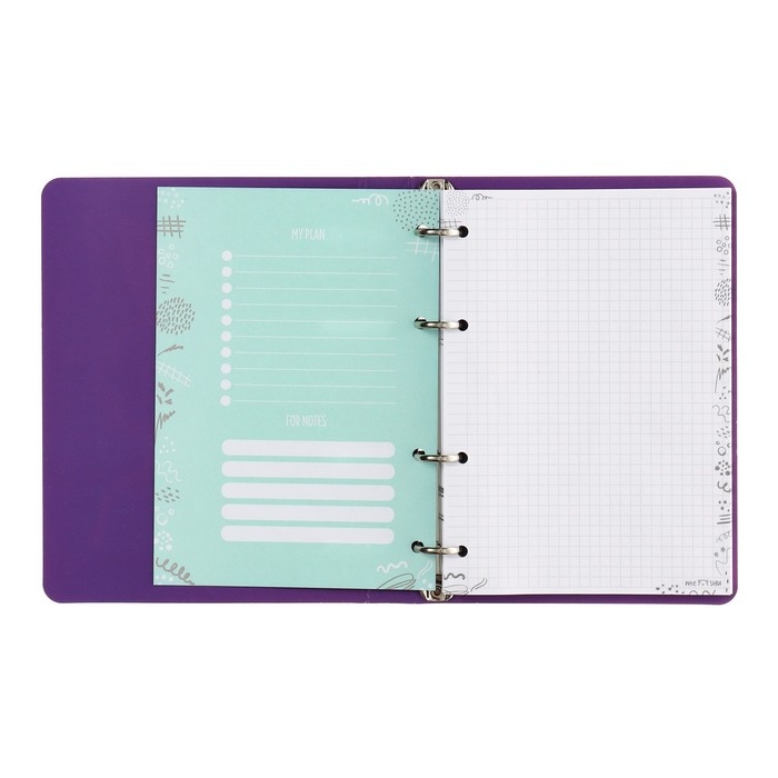 Тетрадь на кольцах А5, 100 листов в клетку MESHU Miumiu, обложка мелованный картон, матовая ламинация, тиснение фольгой
