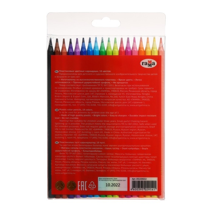 Карандаши цветные пластиковые 18 цветов Гамма "Мультики", заточенные, ПВХ, европодвес 251220212