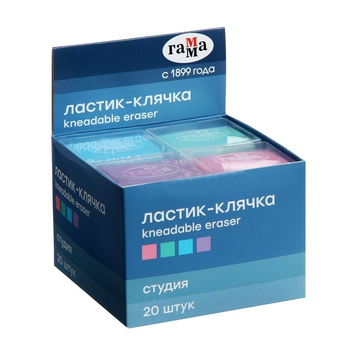 Ластик-клячка 40 х 35 х 10 мм Гамма "Студия", в пластиковом контейнере, пастельные цвета МИКС 260722_02
