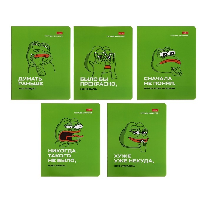 Тетрадь А5, 48 листов клетка Лягушонок ПЕПЕ. Выпуск №1, обложка мелованный картон, скругленые углы, блок 65 г/м2, 5 видов МИКС