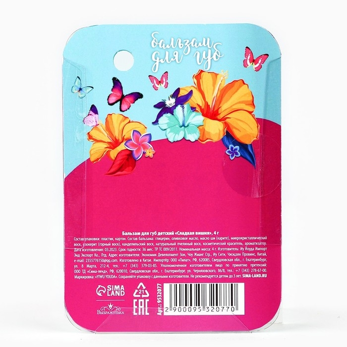 Бальзам для губ детский «Сладкая вишня», 4 гр