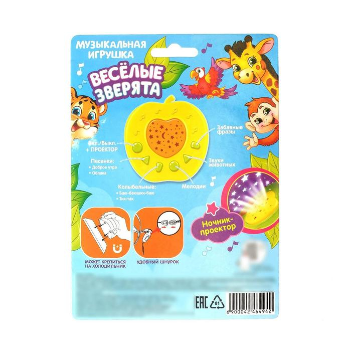 Ночник музыкальный «Весёлые зверята», игрушка-проектор, цвет жёлтый