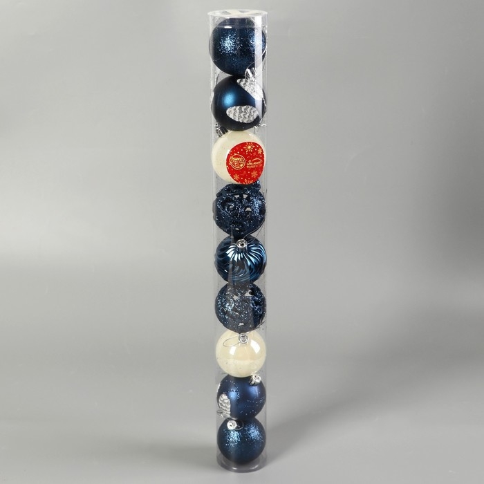 Набор шаров пластик d-6 см, 9 шт "Мелодия" орнамент волны, синий белый
