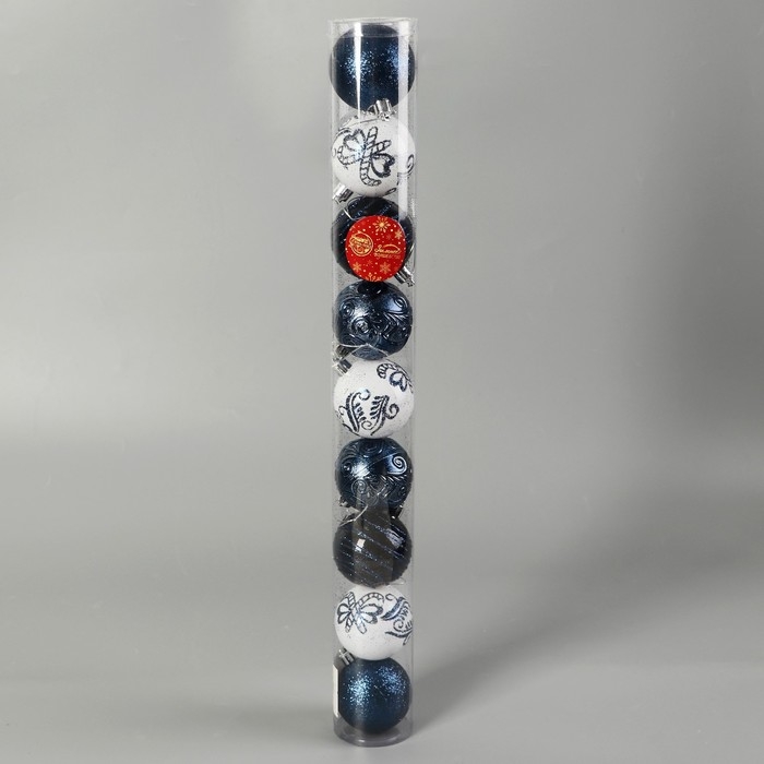 Набор шаров пластик d-6 см, 9 шт "Мелодия" орбита узор элит синий, микс