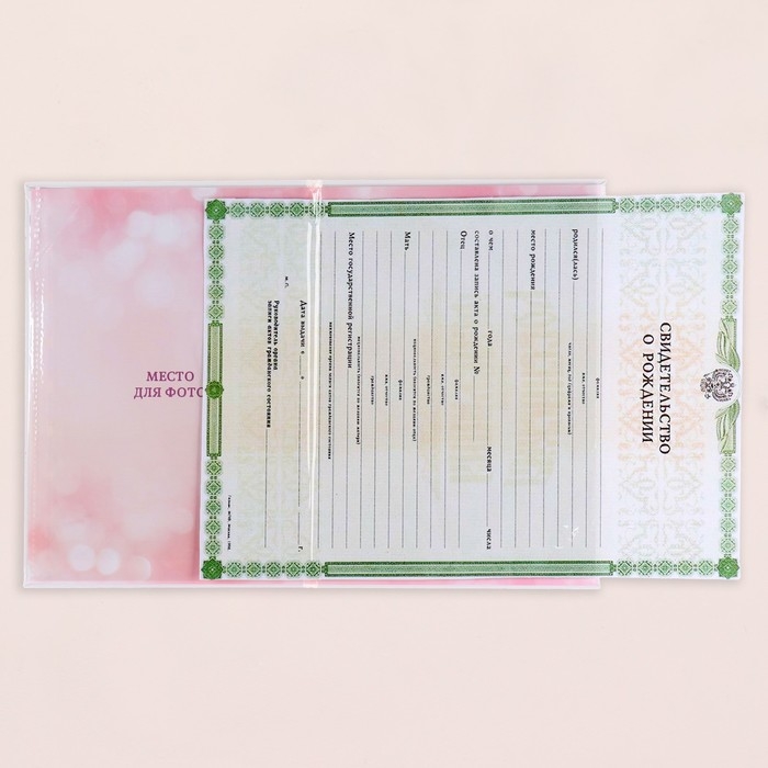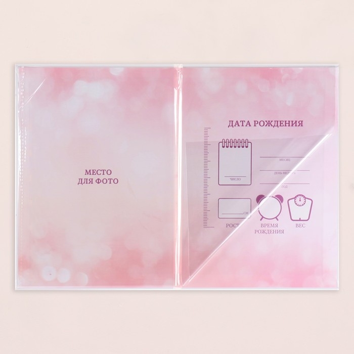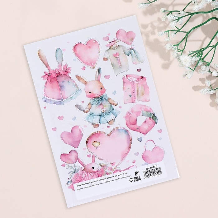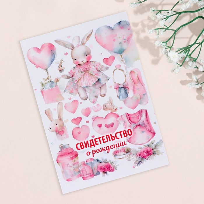 Папка под свидетельство о рождении "Зайчик" розовый тон, А5