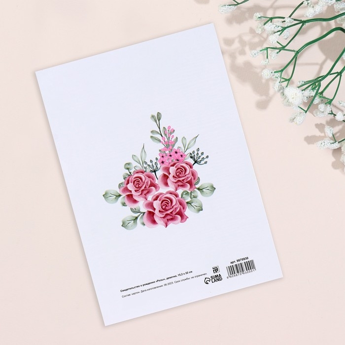 Папка под свидетельство о рождении "Розы" девочка, А5