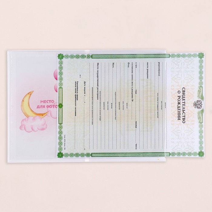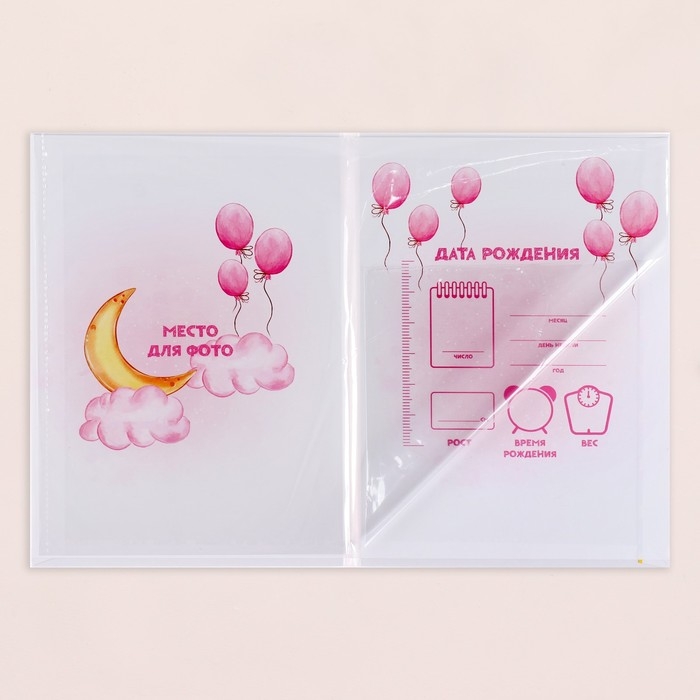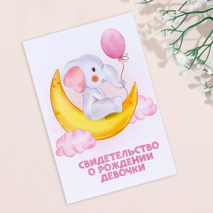 Папка под свидетельство о рождении "Слоник" розовый тон, А5