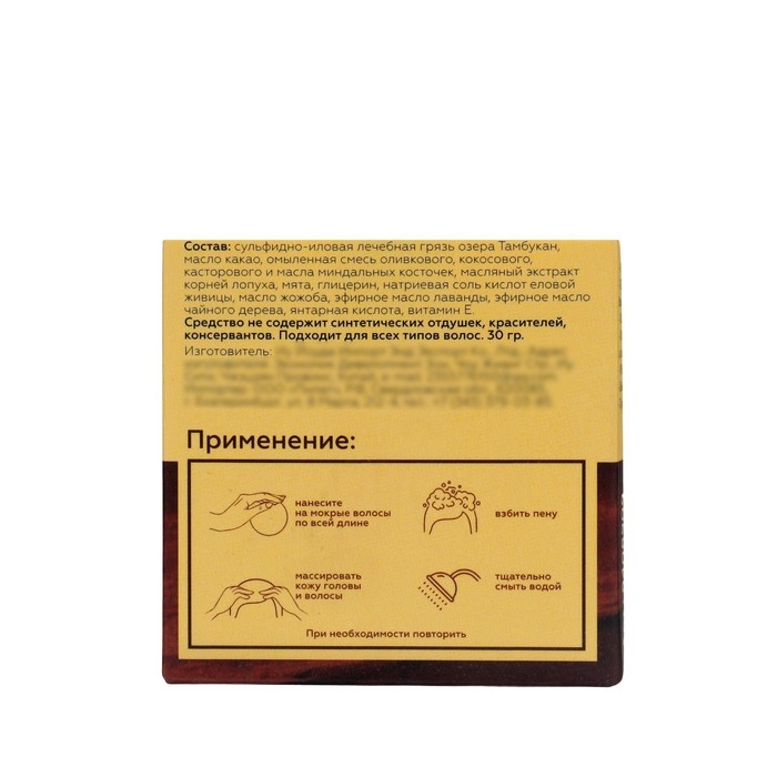Шампунь твердый лечебный с грязью Тамбуканского озера и маслом какао - это продукт, специально разработанный для ухода за волосами. Он содержит натуральные ингредиенты, которые могут оказывать полезное воздействие на волосы и кожу головы.