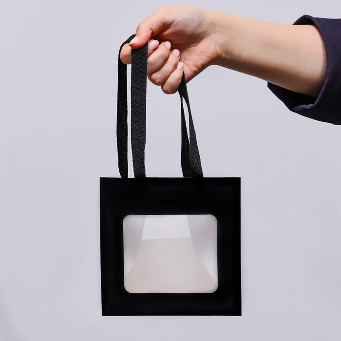 Пакет подарочный, крафт, с окном, «Черный», 15 х 15 х 15 см