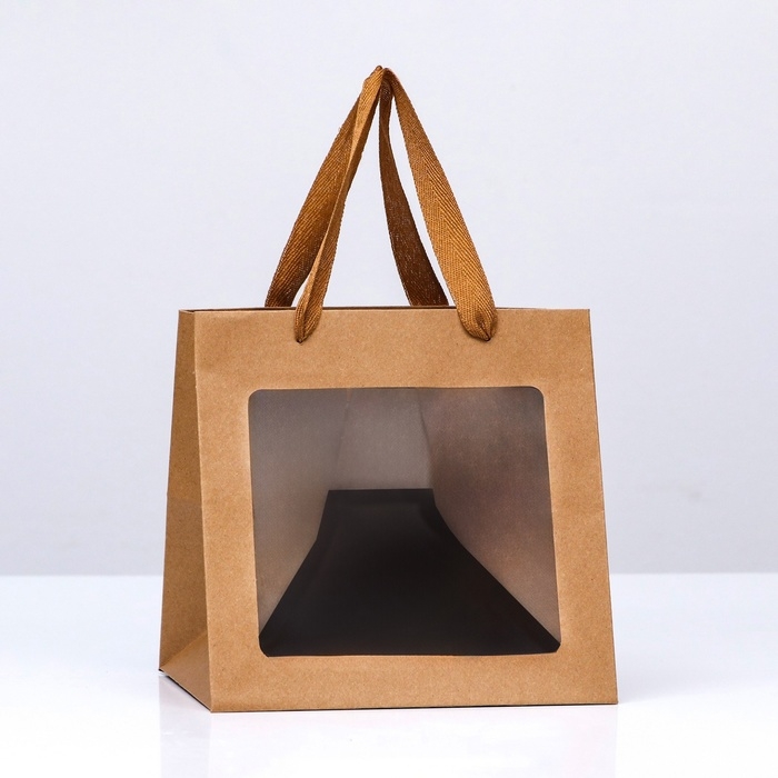 Пакет подарочный, крафт, с окном, 20 х 20 х 20 см