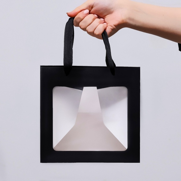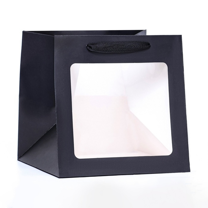 Пакет подарочный, крафт, с окном, «Черный», 20 х 20 х 20 см