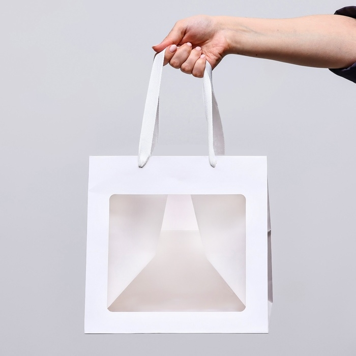 Пакет подарочный, крафт, с окном, «Белый», 25 х 25 х 25 см