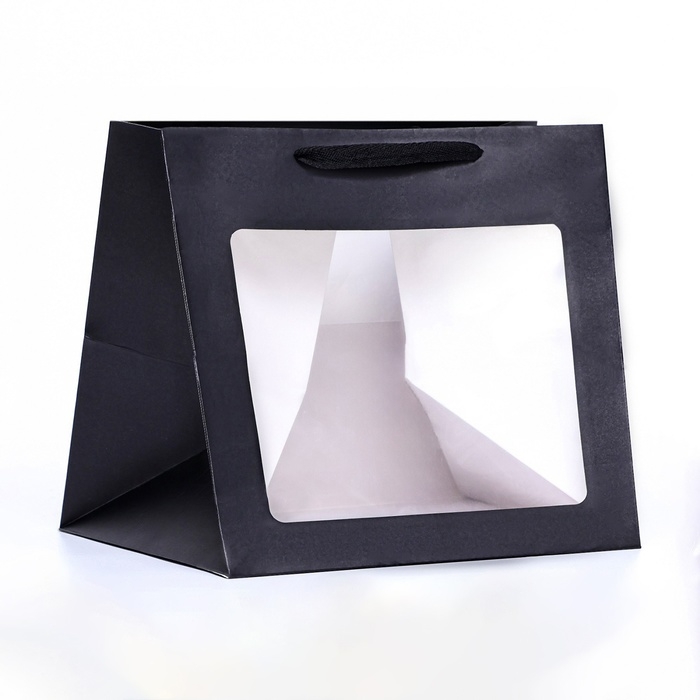 Пакет подарочный, крафт, с окном, «Черный», 25 х 25 х 25 см