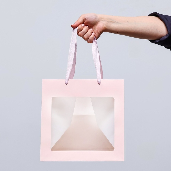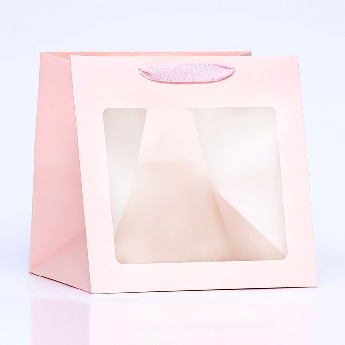 Пакет подарочный, крафт, с окном, «Розовый», 25 х 25 х 25 см