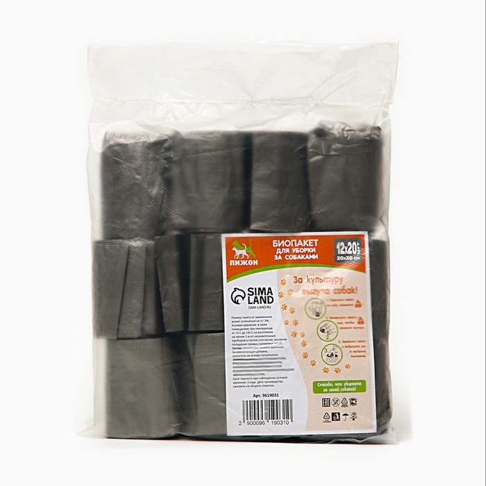БИО Пакеты "Пижон" для уборки за собаками 20 х 30 см, 8 мкм, 12 х 20 шт, серые