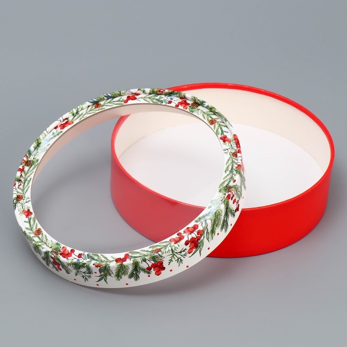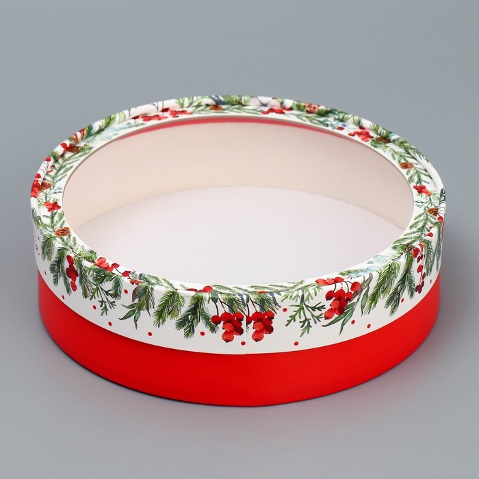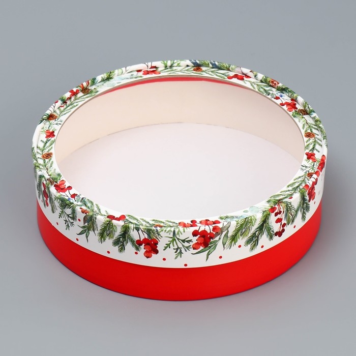 Коробка для макарун тубус с окном «Новогодняя ботаника», 20 х 20 х 5 см, Новый год