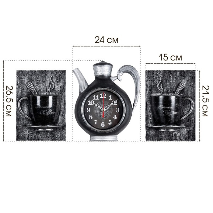 Часы настенные интерьерные для кухни "Сангино", бесшумные, 26.5 х 24 см, черное серебро, АА