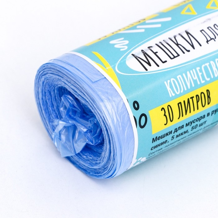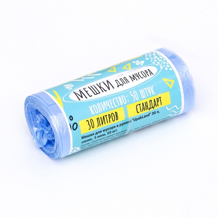 Мешки для мусора в рулоне «UPAK LAND» 30 л, синие, ПНД, 5 мкм, 50 шт, 45 х 54 см