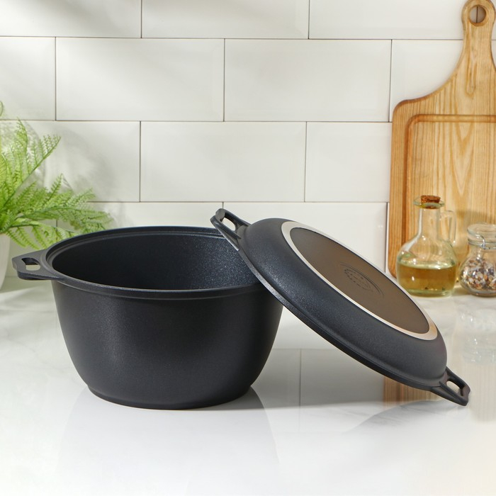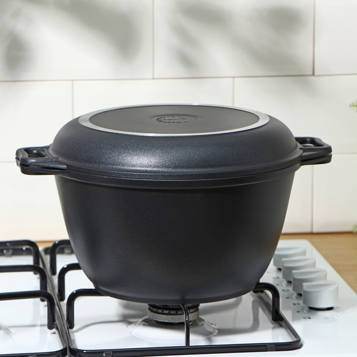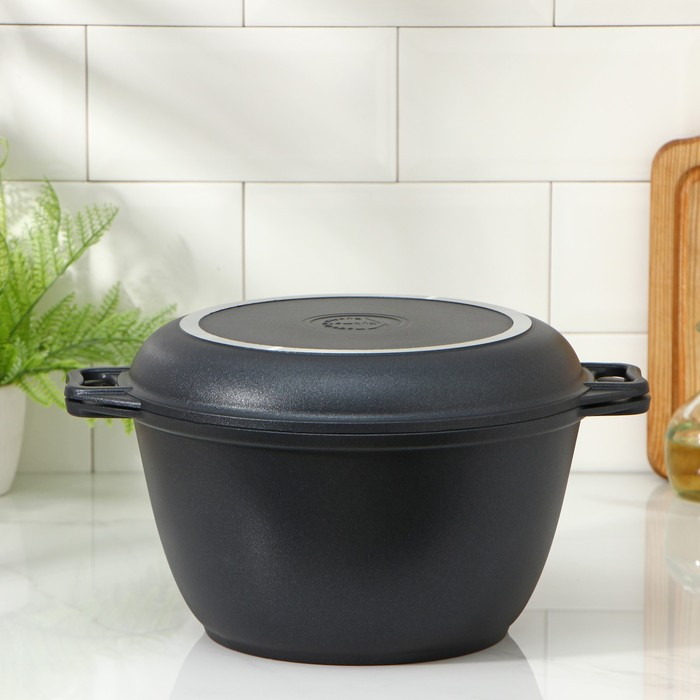 Казан «Традиция», 4 л, крышка-сковорода, литые ручки, антипригарное покрытие, цвет чёрный