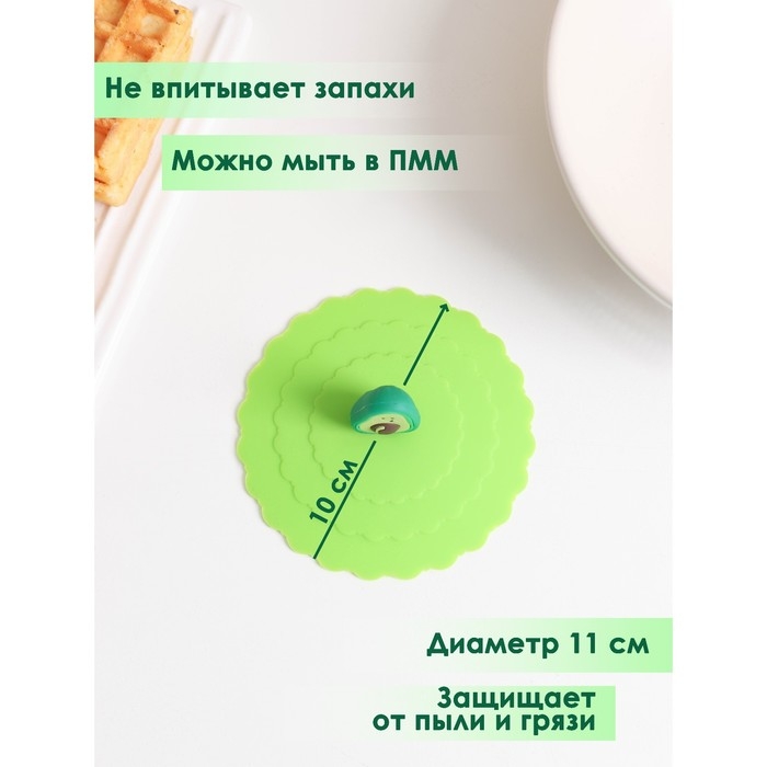 Крышка - непроливайка силиконовая Доляна «Авокадо», d=10 см, цвет зелёный