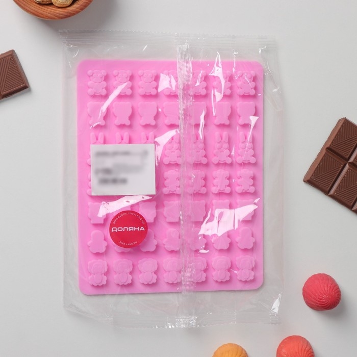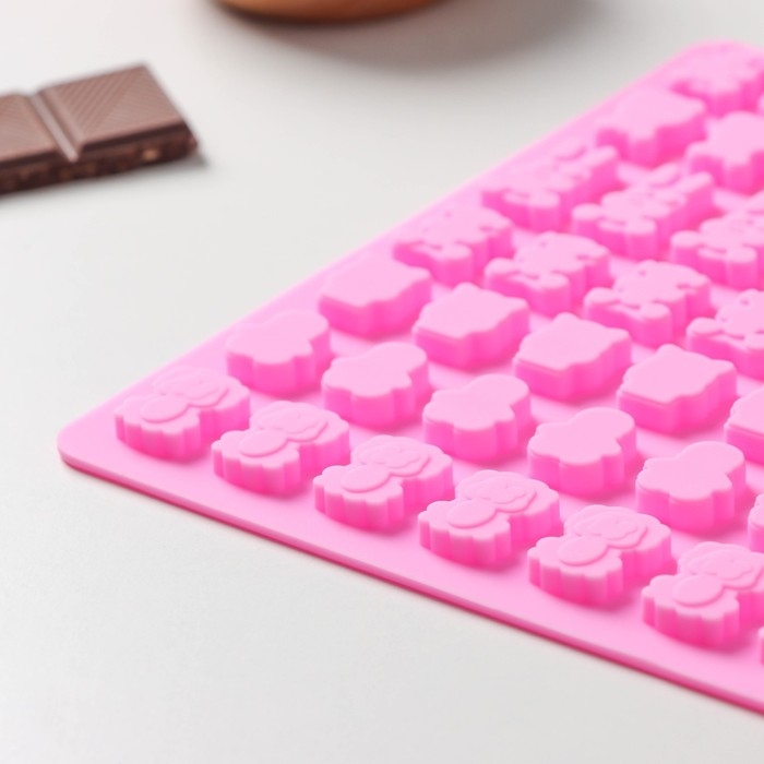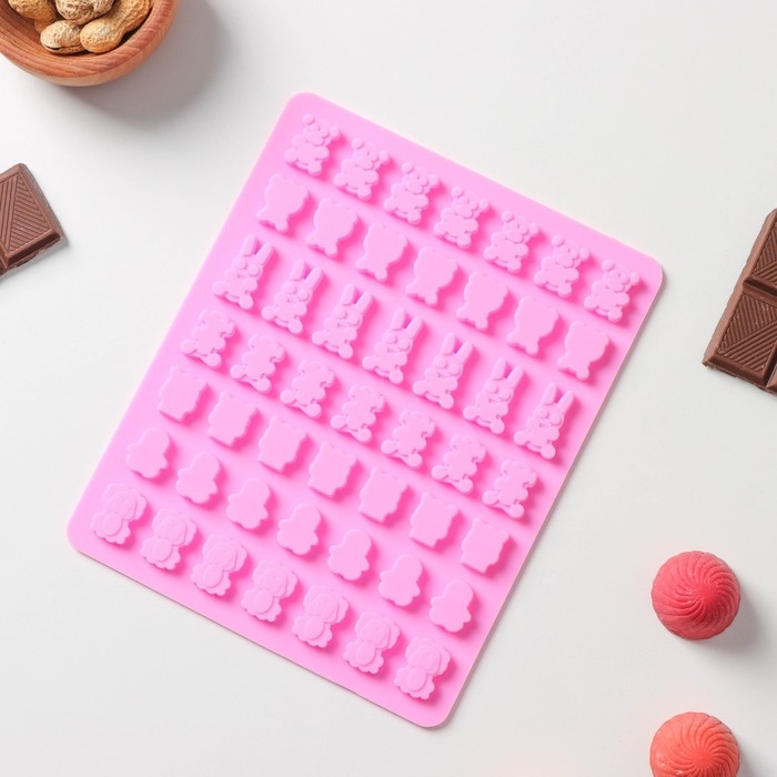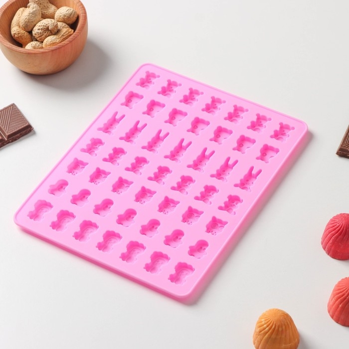 Форма для мармелада Доляна «Зоопарк», силикон, 18,5×15×0,5 см, 49 ячеек (2×1,5 см), цвет розовый