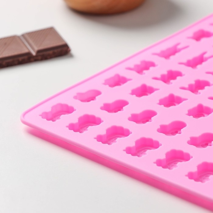 Форма для мармелада Доляна «Дино», силикон, 19×11,7 см, 48 ячеек (1,9×1 см), цвет МИКС
