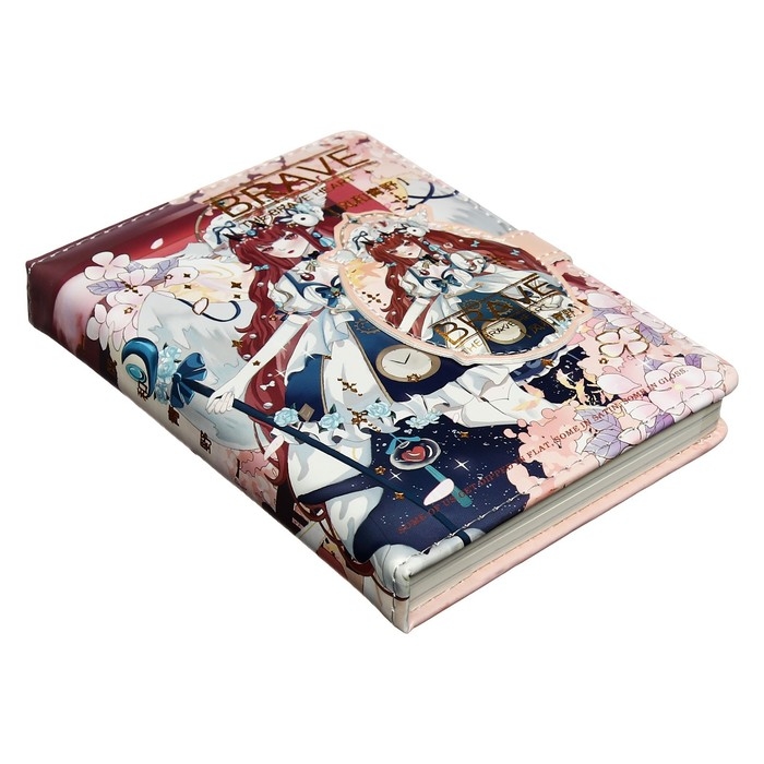 Записная книжка подарочная, А6, 100 листов, цветной блок, с фигурным хлястиком на магните, "Аниме", МИКС