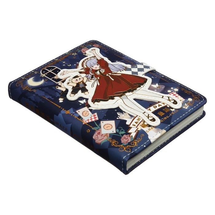 Записная книжка подарочная, А6, 100 листов, цветной блок, с фигурным хлястиком на магните, "Аниме", МИКС