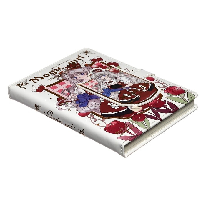 Записная книжка подарочная, А6+, 132 листа, цветной блок, с фигурным хлястиком на магните, обложка пвх, "Аниме", МИКС