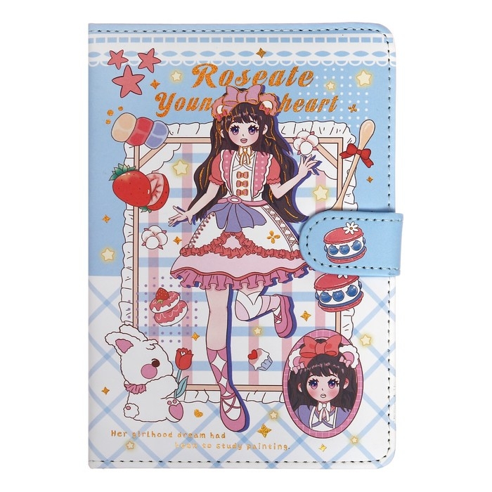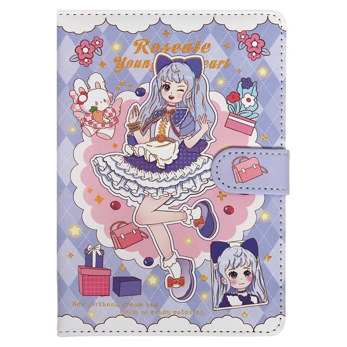 Записная книжка подарочная, А6+ 132 листа, цветной блок, с хлястиком на магните,обложка пвх, "Аниме", МИКС