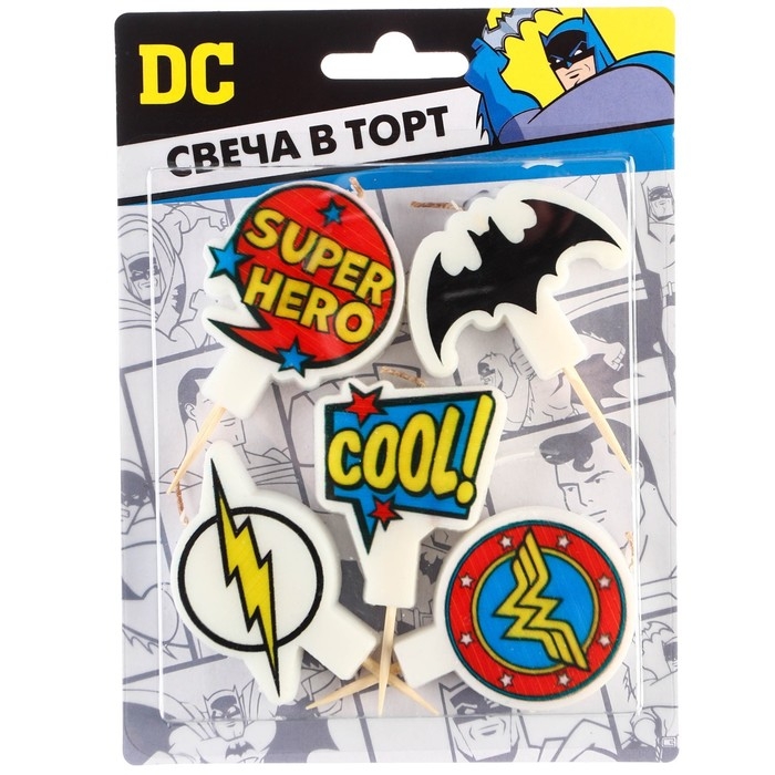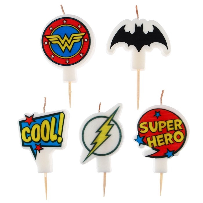 Свеча для торта "С Днем Рождения!", 5 штук, Супергерои