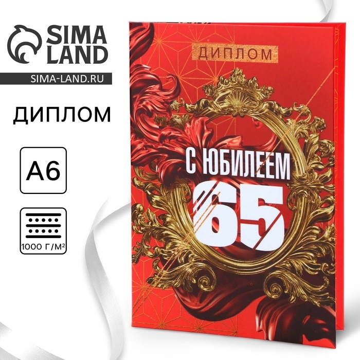 Диплом «С Юбилеем 65», А6, 16 х 11,3 см.