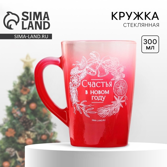 Кружка новогодняя стеклянная с градиентом «Счастья в НГ», 300 мл