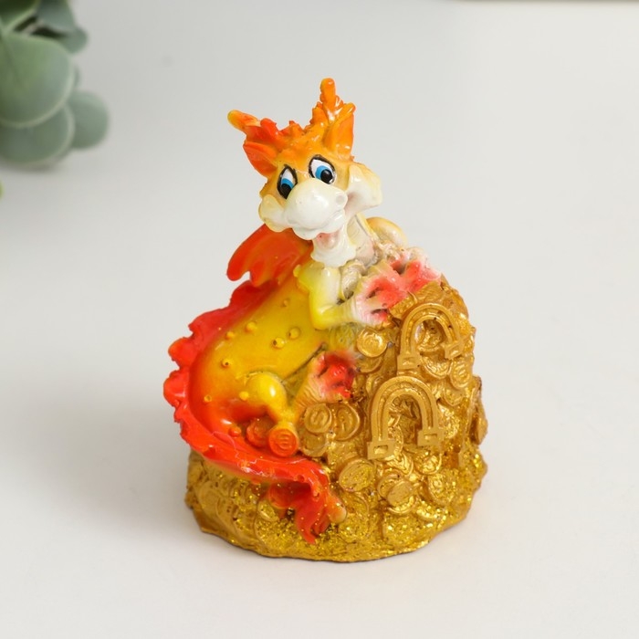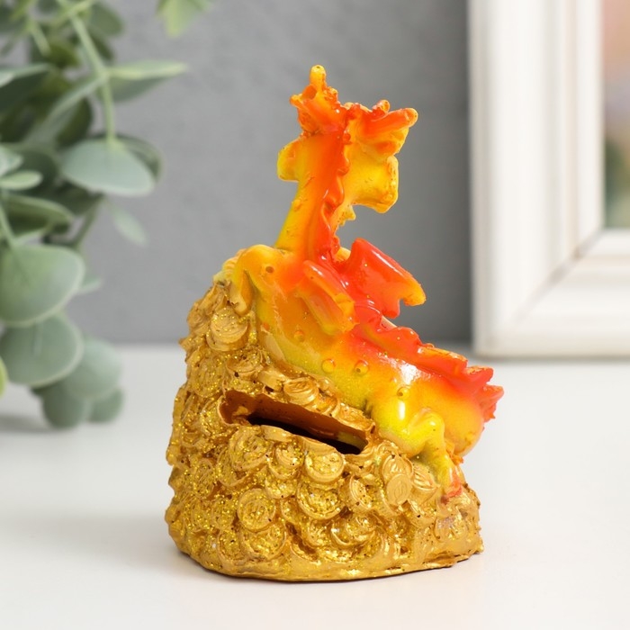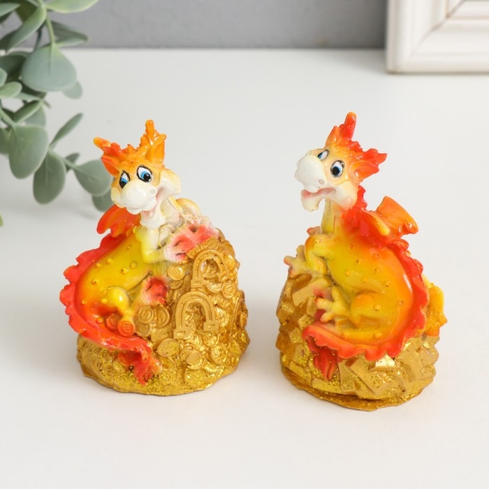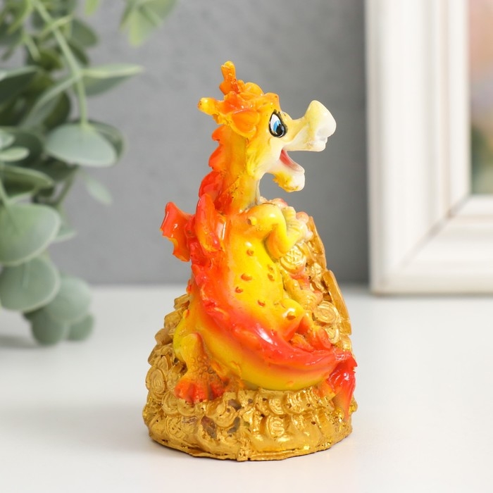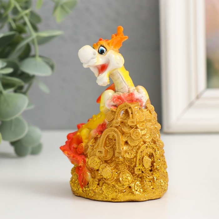 Сувенир полистоун "Огненный дракон на монетах/слитках" МИКС 6х5х9 см
